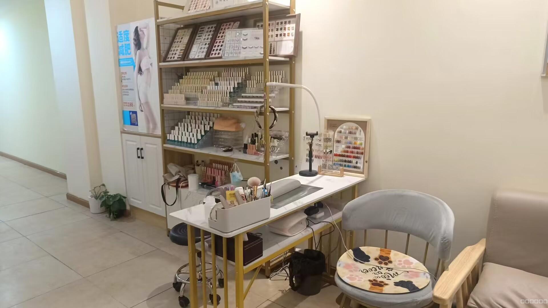 面积10平米,设备齐全,美容院美甲区,可进行美甲美睫,三纹三绣,现转让。